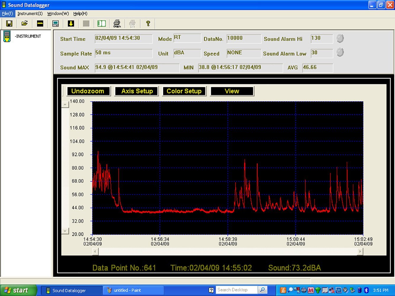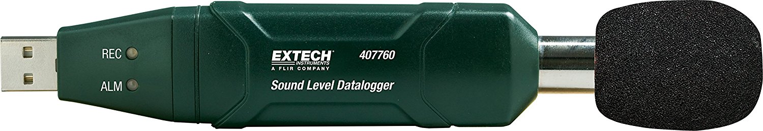 407760 Sound Level Datalogger can record up to 129,920 records and uses a USB interface for easy setup and data download. The datalogger meets ANSI and IEC 61672 Class 2 standards with a 1.4dB accuracy. Additional features include A and C weighting, Fast/Slow response time, and 2 start methods: programmed (from PC) or manual. Comes complete with software, tripod, USB extension cable, windscreen, and 3.6-Volt Lithium battery.