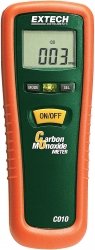 Checking co levels is as easy as pushing just 1 button on the model C010, which measures up to 1,000 ppm. An audible indicator increases in tone starting at 35 ppm. The higher the concentration of co, the faster the alarm will sound. Above 200 ppm, the alarm will sound continuously. A backlight on the display can be used for low light areas. Additional features include: max hold, data hold, and auto-power-off. The meter comes complete with a 9-volt battery, protective holster, and case.