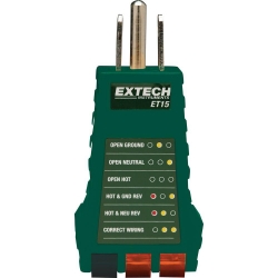 • Tests for faulty wiring in 3-wire receptacles: Correct, Open Ground, Open Neutral, Open Hot, Hot/Ground Reverse, Hot/Neutral Reverse |