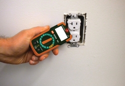 • Built-in non-contact Voltage detector with LED alert to quickly check for the presence of live wires before testing |