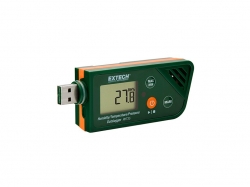 • Compact size housing with built-in NTC thermistor, capacitive humidity sensor, and barometric pressure MEMS sensor designed with standard USB connector for easy data downloading to a PC• 5-digit LCD display with battery life indicator• User programmable settings: 6 languages, sample rate, start delay time, alarm delay time, high/low alarm range, and security feature• Status Indication via Red and Green LEDs• Start button begins continuous datalogging, which continues until memory is full at 48,000 readings (16K for each parameter), or when Stop button is pressed• Bookmark 8 locations in a data recording log with a press of the Mark button