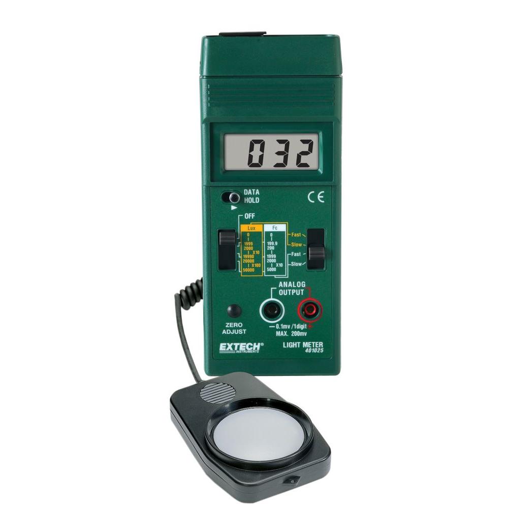 401025 is a Foot Candle/Lux Meter which measures light level to 5000FC (foot-candles) and 50,000 Lux with a 5% accuracy using a precision photo diode and color correction filter. Meter features fast/slow response time and an analog output (1mV per count) for capturing readings to a recorder. Comes complete with 9-Volt battery.